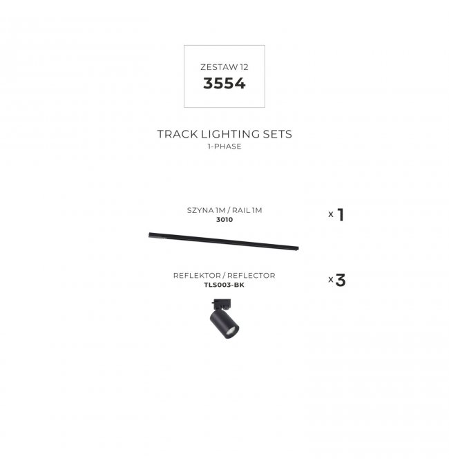 Zestaw szynoprzewód prosty 1m z reflektorami czarny 1-fazowy 3554 Zuma Line